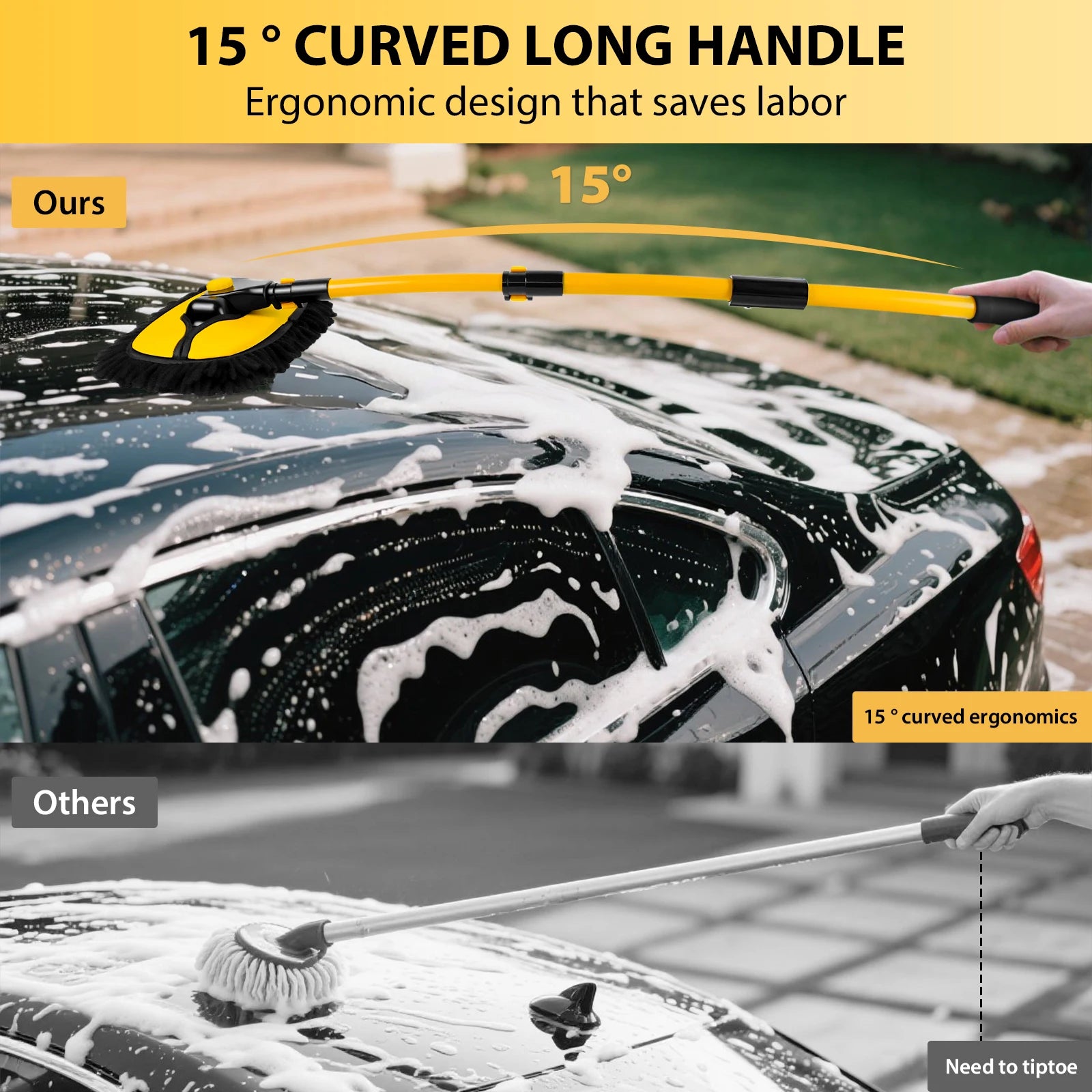 15° Arc Retractable Car Cleaning Brush, Portable Brush Set with Storage Bag for RV, Truck and Camper Cleaning