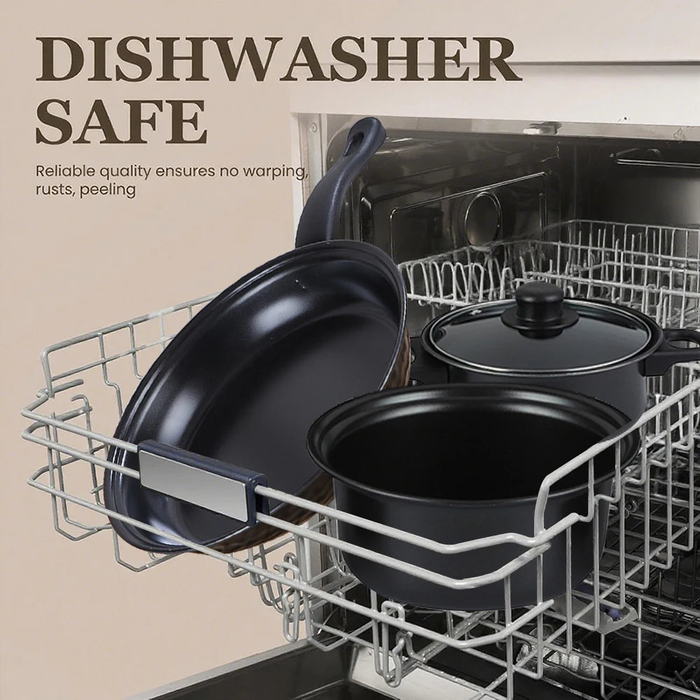 16-Piece Non-Stick Cookware Set Milk Pot Maifan Stone Frying Pan with Lid Stackable Pot Set for All Types of Cooker Xmas Gift