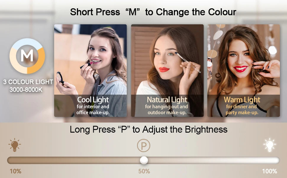 Features: Lighted, LED Lighted, Touch Sensor, Magnifying
