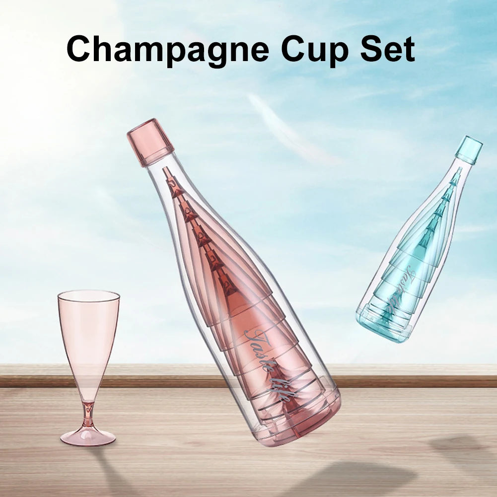 5Pcs Clear Wine Glasses with Storage Bottles Foldable Wine Glasses Reusable Champagne Glasses Folding for Outdoor Camping Travel