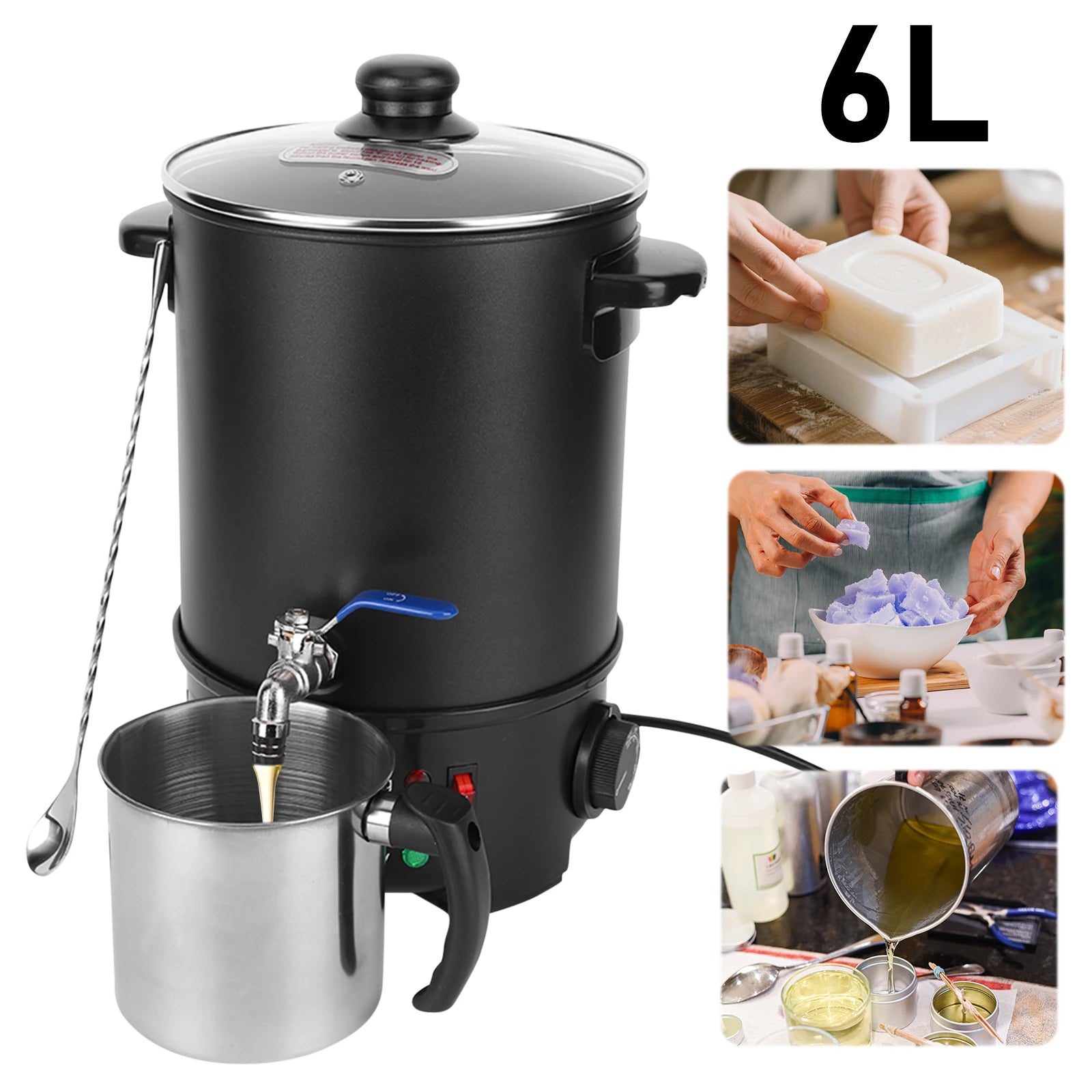 6L Candle Melting Pot Large Capacity Electric Wax Melt Machine Stainless Steel Wax Melting Furnace for Candle Soap Making
