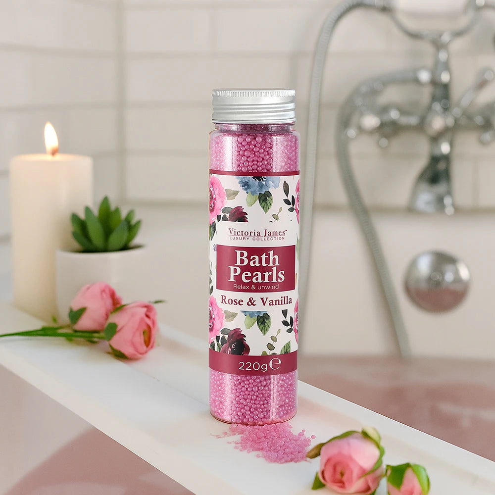 Bath Pearls 220G Relaxing Lavender Bergamot Rose Vanilla Scent, Moisturising Beads for Spa Home Bath