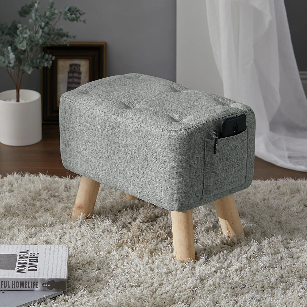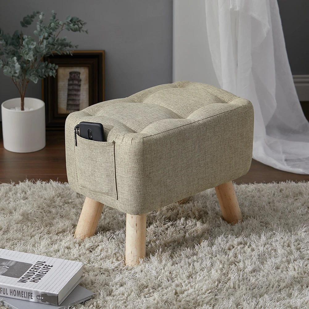 【Breeins】Linen Upholstered Ottoman Footstool with Pocket Chair Sofa Home Decoration
