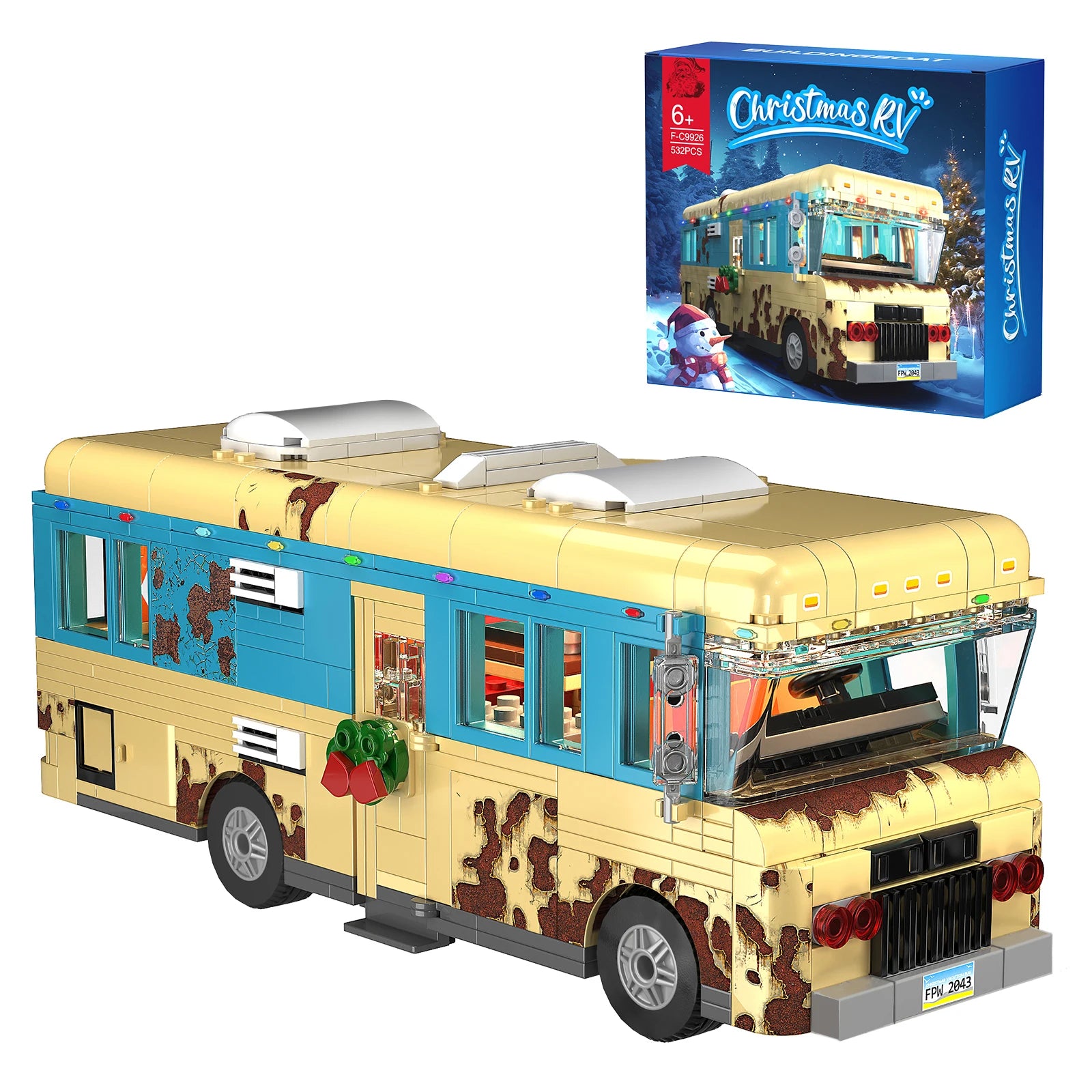 Christmas Cousin's RV Building Blocks Set LED Christmas Holiday Snow Village RV Toys Gifts for Boys, Girls, Family