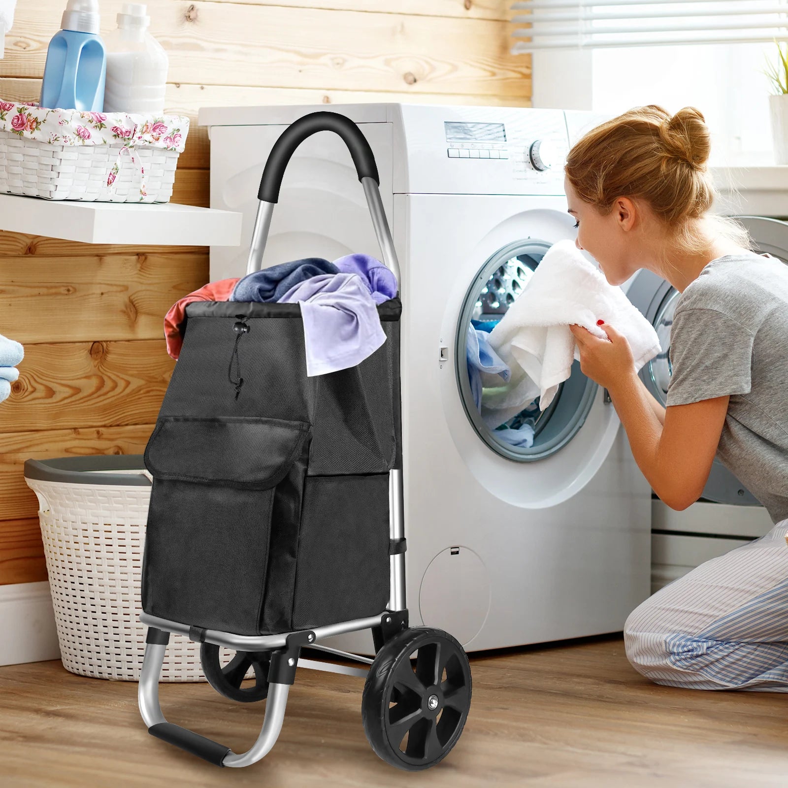 Foldable shopping trolley Lightweight aluminium shopping trolley Comes with removable shopping bag Waterproof fabric Mudguard