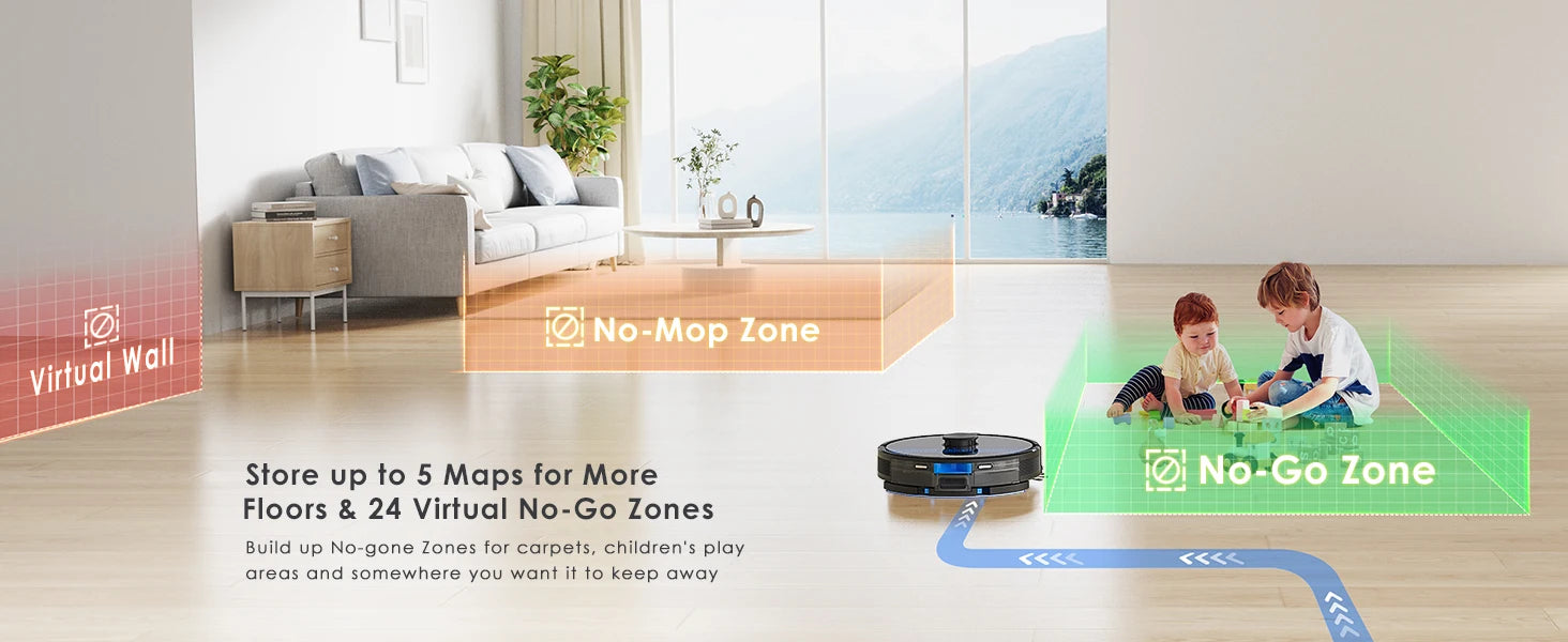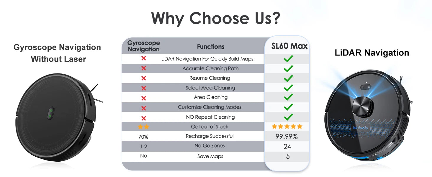 Lubluelu SL60 Max 3-in-1 Robot Vacuum Mop - 5000Pa Suction Pet Hair Long Hair Friendly LDS9.0 LiDAR 24 No-Go Zones APP Control