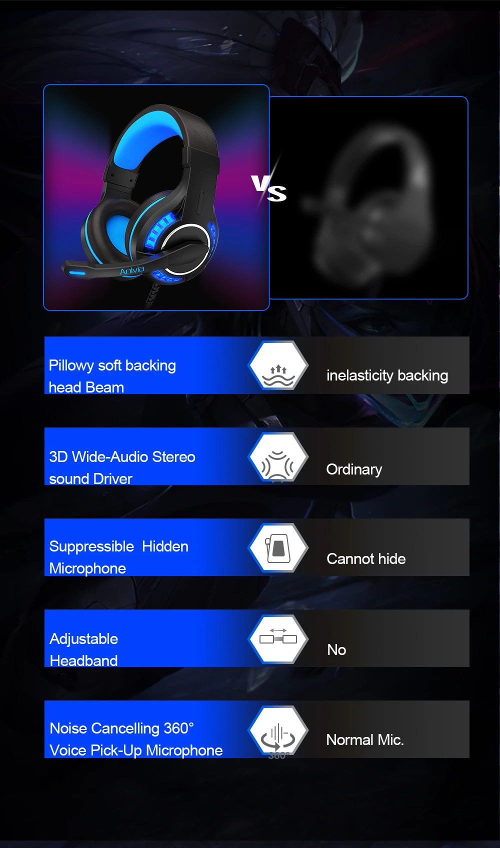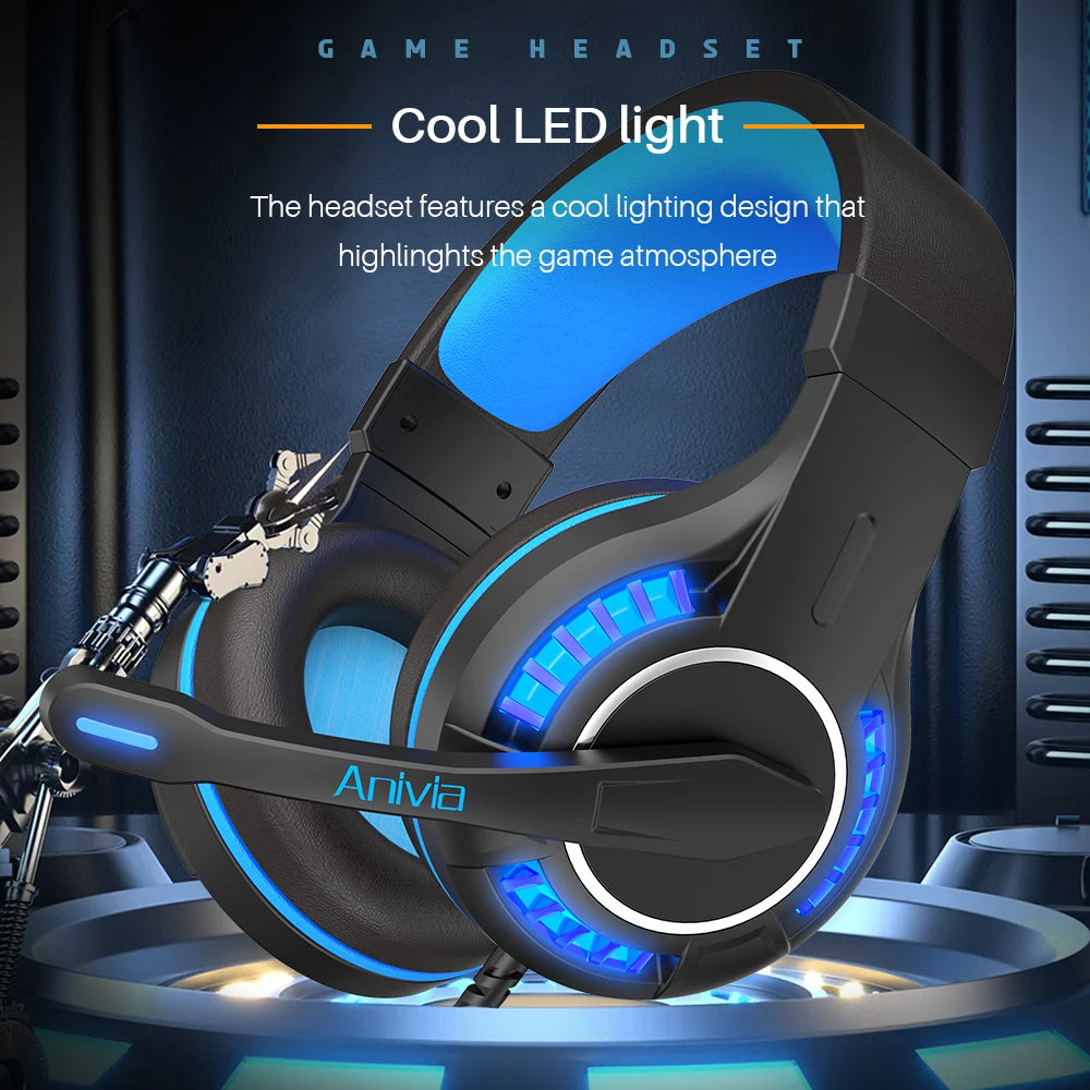 Pro Gaming Headset with Microphone, LED Lights, Bass Stereo Sound for PC PS5 PS4 Xbox, Computer Video Game Headphones Gifts for