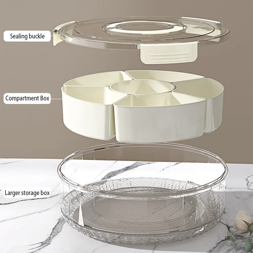 Six-Grid Food Storage Box With Handles Divided kitchen Container Compartments Stackable Snack Tray Removable and washable
