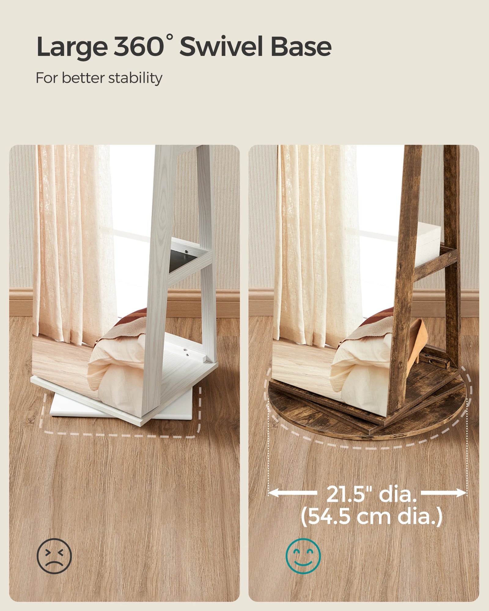 SONGMICS 6 LEDs Mirror Jewellery Cabinet, 360 Swivel Jewellery Storage Organiser, Lockable, Free-Standing Mirror with Storage