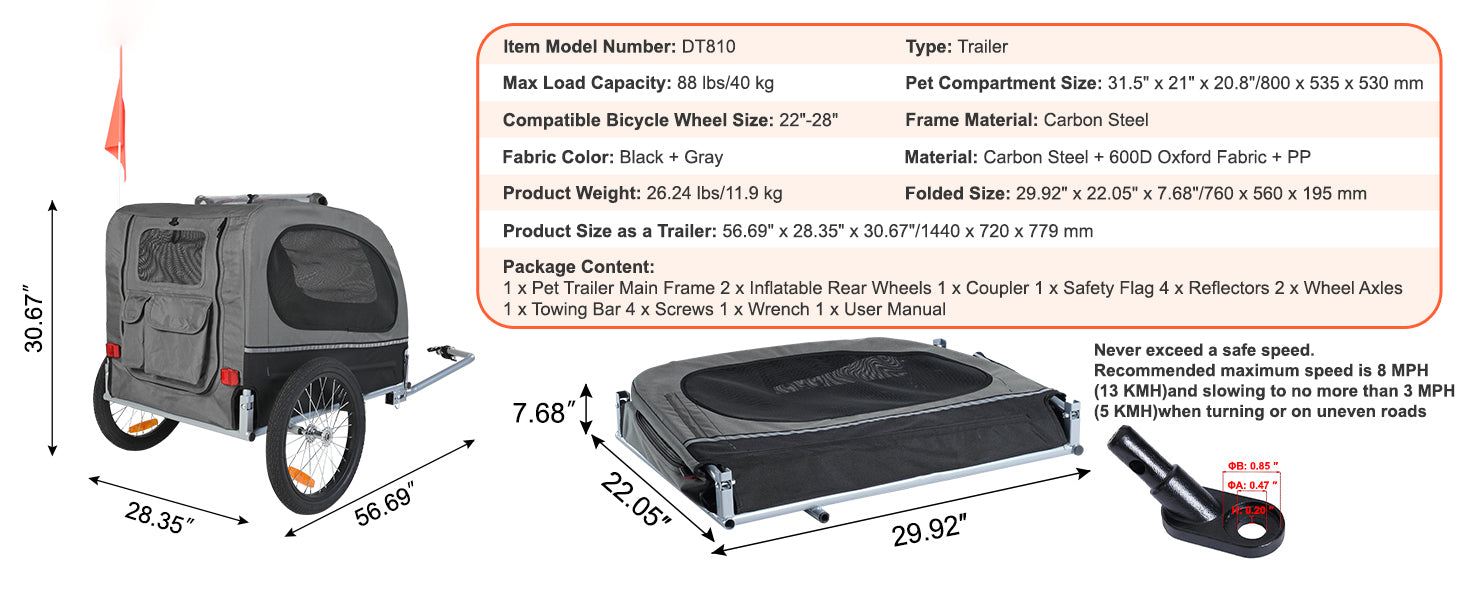 Product Size as a Trailer: 56.69" x 28.35" x 30.67"/1440 x 720 x 779 mm
