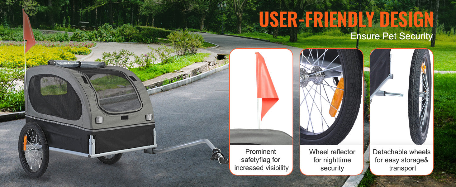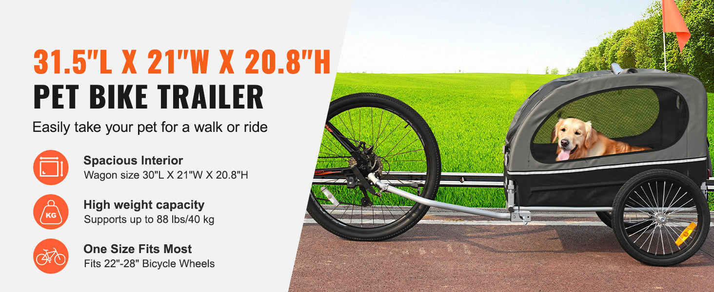 SucceBuy 88 lbs Dog Bike Trailer Pet Cart Bicycle Carrier with Wheels Coupler Reflectors Flag Collapsible to Store for Dogs